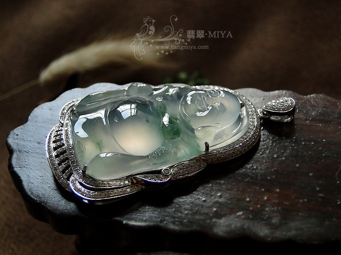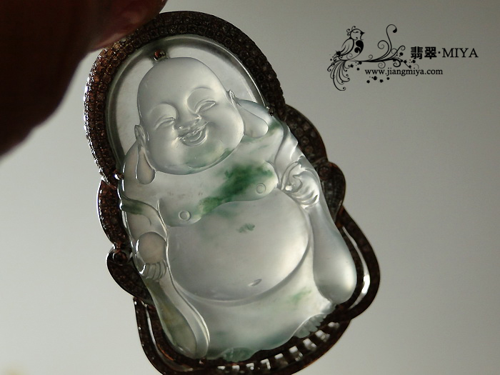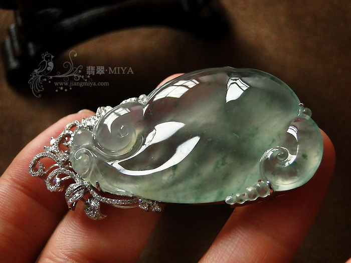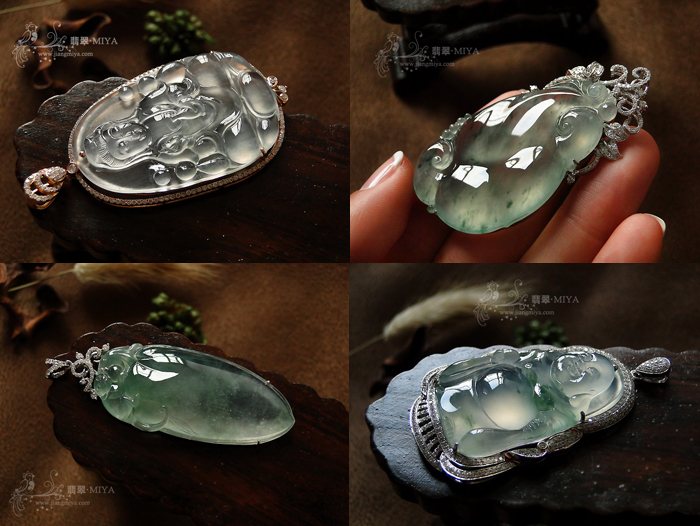 种老且很细腻,老坑玻璃种,强荧光,这块料子较薄,所以作了托底镶嵌弥补;