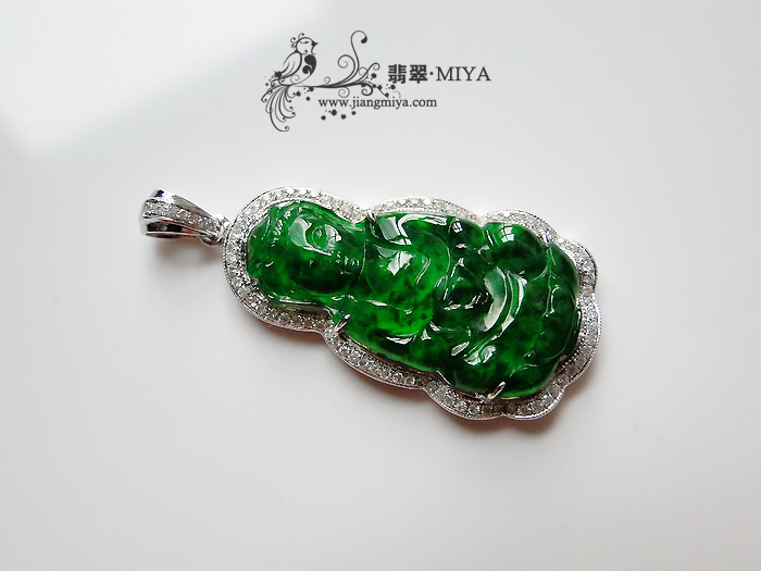 1号:18k白金钻石磨砂效果镶嵌浅阳绿葫芦