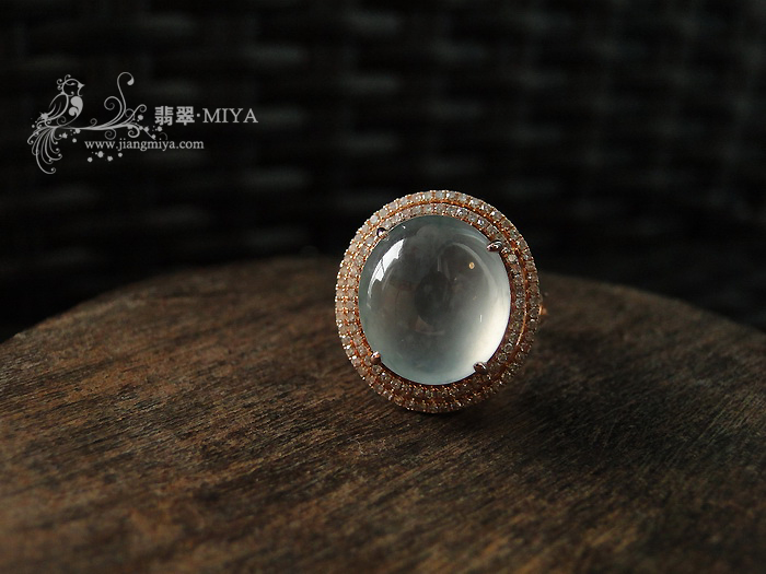 18k玫瑰金钻石围镶高冰种起荧光大蛋面戒指