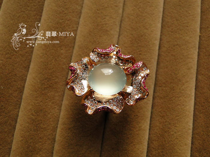 通常这样一枚玻璃蛋面不含镶嵌,价值也要2万多,所以,这一枚戒指,非常超值。值得入手收藏,佩戴。