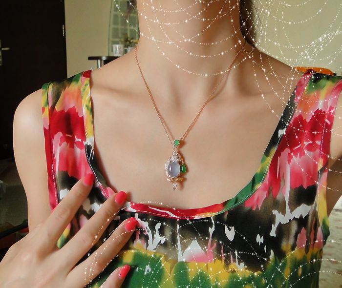 蛋面有点淡淡的紫色,非常水润,也很通透细腻;