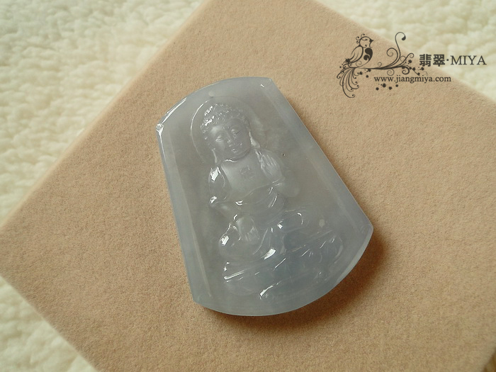 冰种至冰糯种,质地细腻,紫罗兰,为满色,少许棉,料子有个小小的坑是为了避瑕所雕刻,佩戴看不见,照片放大则明显一些。