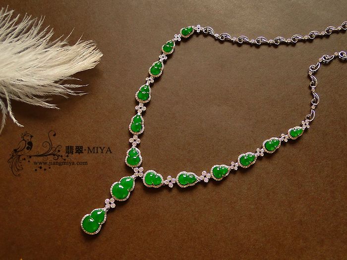 翠色欲滴满色阳绿葫芦套链 发表于 2012年10月18日 | 咪雅 色阳,颜色正,很翠绿,有种有色, 个别葫芦有纹,适合收藏,佩戴,上身超美貌。 很有价值感哦。镶嵌18k白金钻石,封底镶嵌。 翠色欲滴满色阳绿葫芦套链 编号:866252 尺寸:待补充 价格:198000元(19万8千元) vip颗优惠3000元。