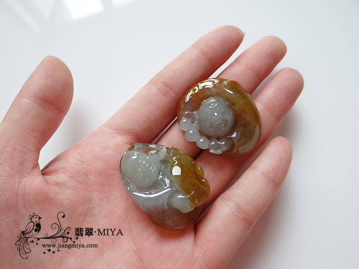很可爱的一对自在佛,冰黄的料子,很水润,俏色巧雕;