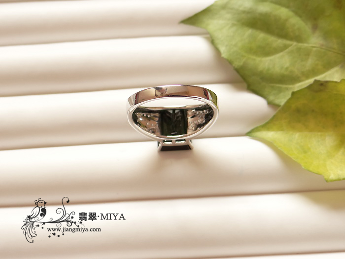 绿碧玺,是碧玺中泛黑的绿碧,款式比较中性,女子戴可以戴食指,男士更加适合,佩戴起来好看,不夸张。