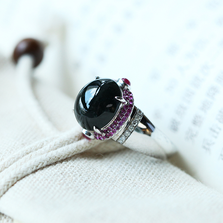 墨翠蛋面戒指定制款 发表于 2018年08月11日 | 助理菜菜 18K金钻石镶嵌A货翡翠墨翠蛋面戒指定制款 翡翠尺寸:11.8*10.6*5mm 镶嵌尺寸:15*13.7*10mm 圈口:18 (可改) 价格:9088元(不议价) 喜欢宝贝可添加咪雅微信咨询:miya616161