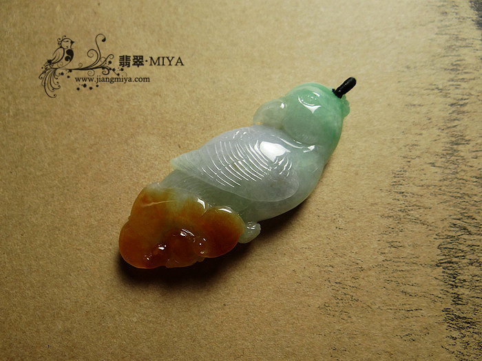 1号:超值细糯种三彩鹦鹉《英明神武》翡翠吊坠