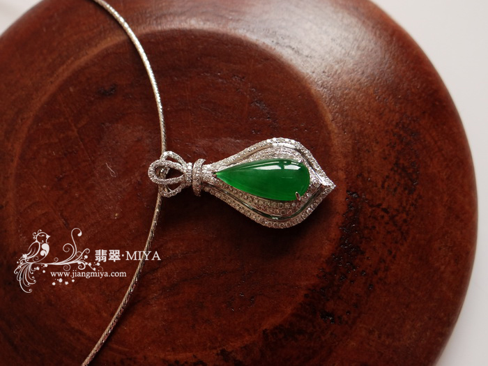 老坑高冰种满色正阳翠绿皇冠水滴挂坠