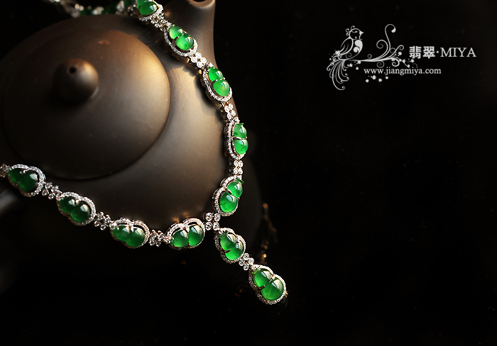 非常貌美翠绿的一条套链,葫芦一串串,很多颗;