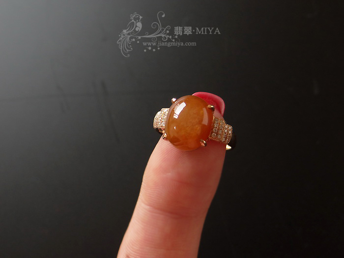 5号:18k玫瑰金钻石镶嵌红翡蛋面戒指