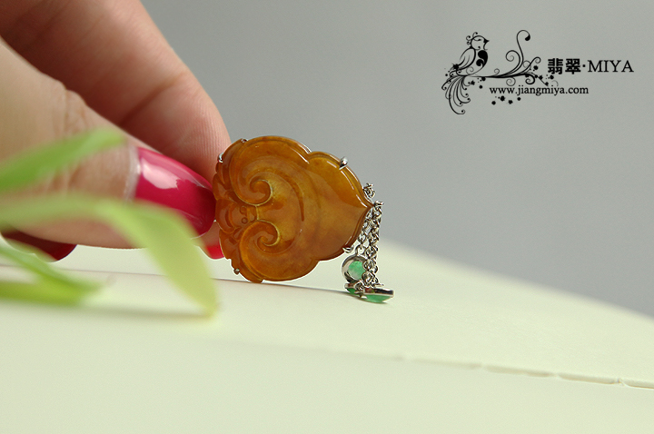冰种,红翡,福寿如意,18k白金钻石翡翠扣,可以透光,无裂纹无瑕疵。