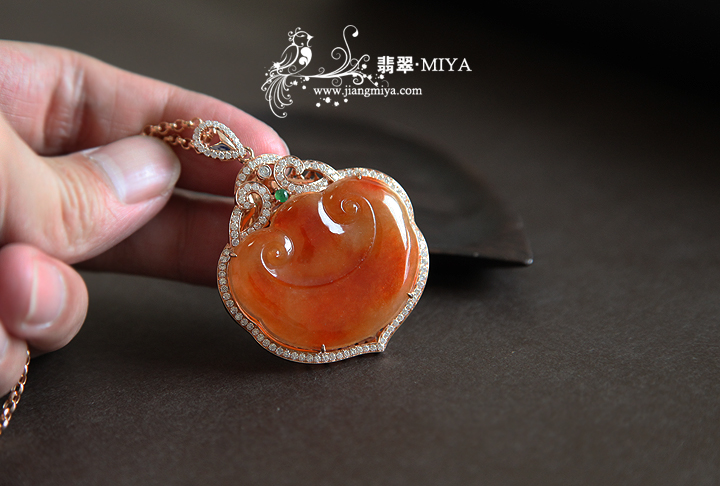 可收藏的美貌靓丽红黄翡翠大如意吊坠
