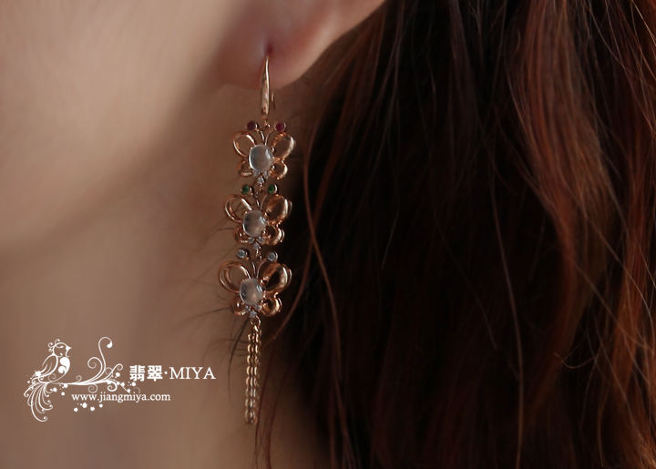 美貌精品蝴蝶耳坠,玻璃种荧光小蛋面,
