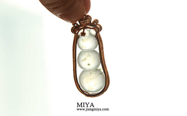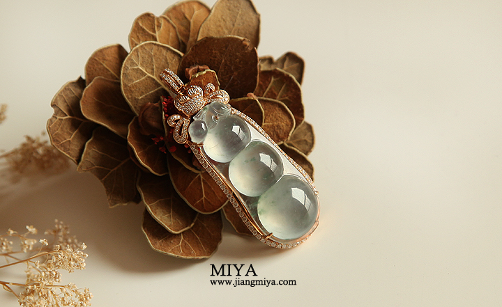 高冰大福豆,略有飘花,料子通透水润,无裂纹。