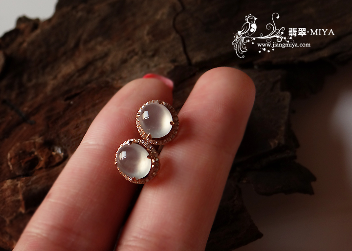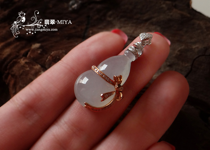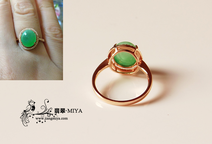 冰种,略起荧光,质地细腻,饱满型正,镶嵌18k白金,玫瑰金,钻石,做工也很精美,