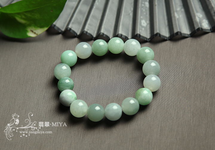 冰糯种,质地细腻,颜色轻微不均匀,适合男士佩戴。个别有纹,整体还是比较完美的一条手链。