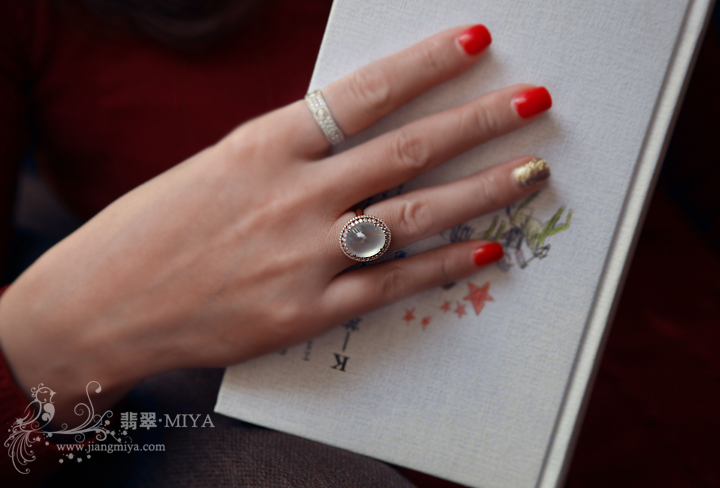 近玻璃种强荧光大白蛋翡翠戒指 发表于 2014年12月12日 | 咪雅 这就是微v信里那一枚新品宝贝,近玻璃种,超强荧光,犹如灯泡,也是双圈荧光哦。 大颗,饱满通透,有一定的刚性,实物佩戴起来也是白光灼灼,很是抢眼。 蛋面无裂纹,微棉。 18k玫瑰金,钻石。 圈数:15号(可免费修改) 实物的荧光比图片更透亮,与上手照也较为接近。 近玻璃种强荧光大白蛋翡翠戒指 镶嵌尺寸:19*17*13mm 蛋面:14.6*12.5*7mm 价格:55800元,vip可优惠。 喜欢可加微信咨询,miya616161