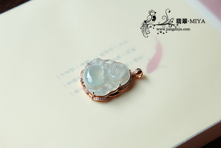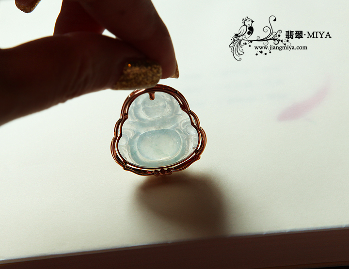 18k玫瑰金钻石镶嵌冰种翡翠佛公