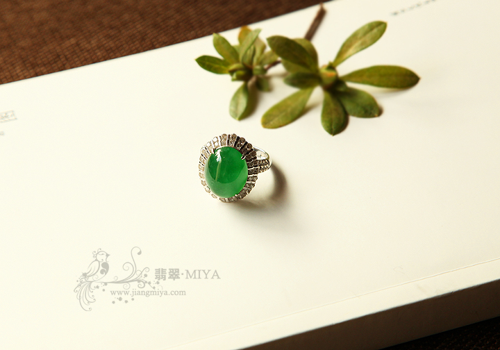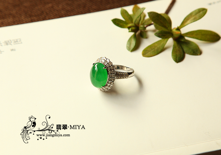 2号:冰种翠阳绿翡翠蛋面镶嵌戒指2,椭圆形