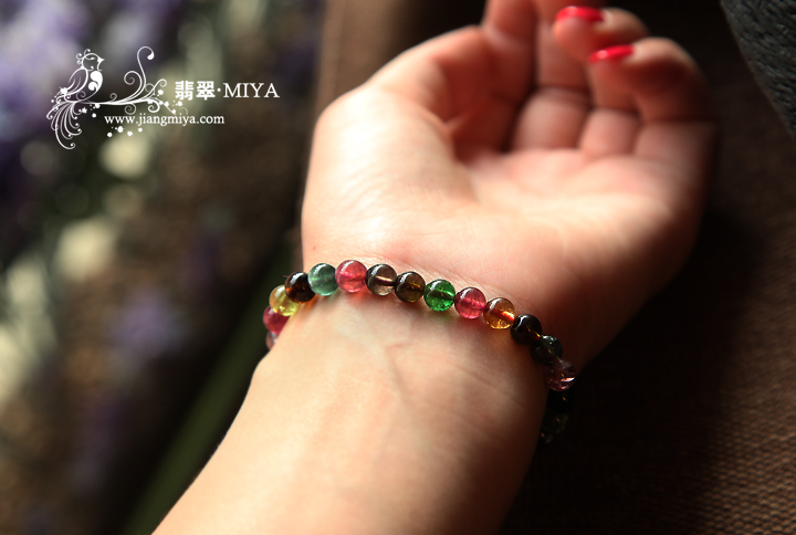 很通透的咖色碧玺手链,相对比较艳色的碧玺,这一条略为沉静,品质也是很不错的,比图片好看。