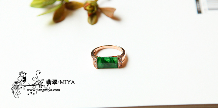 7号:18k玫瑰金钻石镶嵌貌美花青翡翠戒指