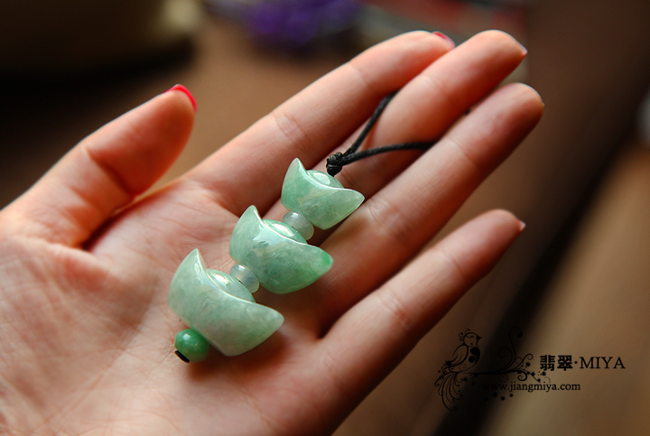 三个大绿元宝编制,可以挂包,挂车,招财进宝,寓意很好,通常这样大的元宝,一颗价格就800元了,性价比高,送礼也很不错。