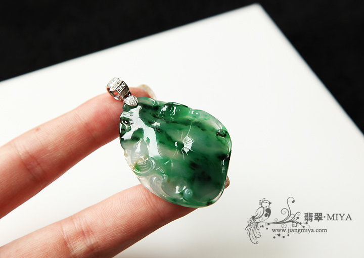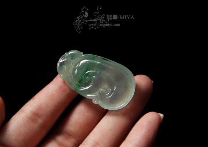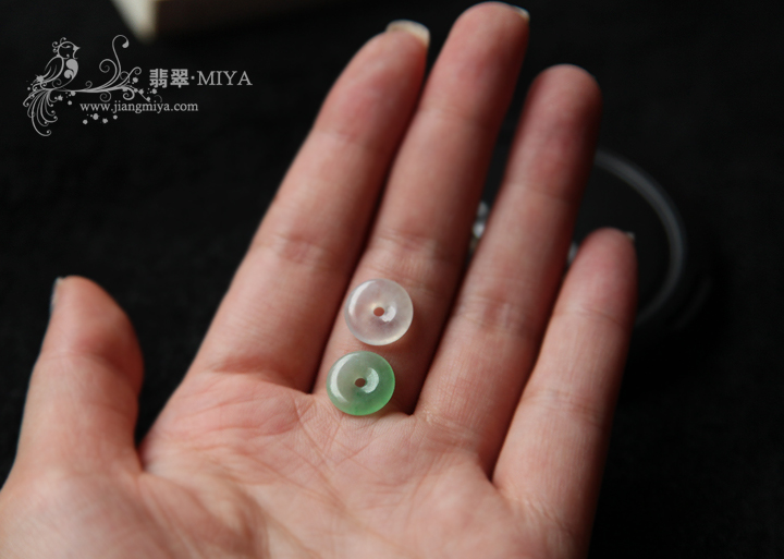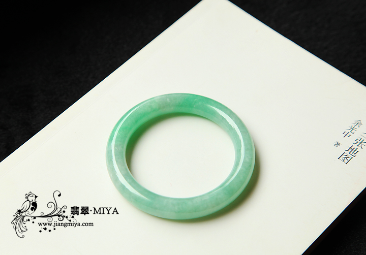 高冰种,轻微飘花,质地很通透,水润,男女都可佩戴,完美,无裂纹,也是咪雅比较中意的一件。