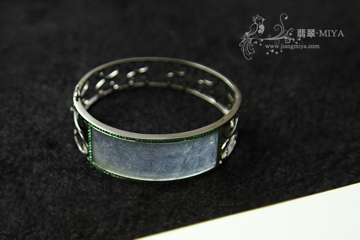 12号:冰种黑金镶嵌翡翠大圈手镯