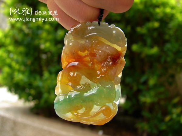 【咪雅翡翠】老坑A货罕见极品冰三彩祥龙如意翡翠挂坠