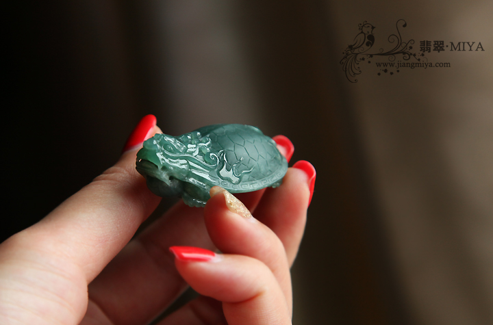 蓝水料通常给人感觉沉静内敛,一般雕做男士的雕件比较多,这一只龙头龟,