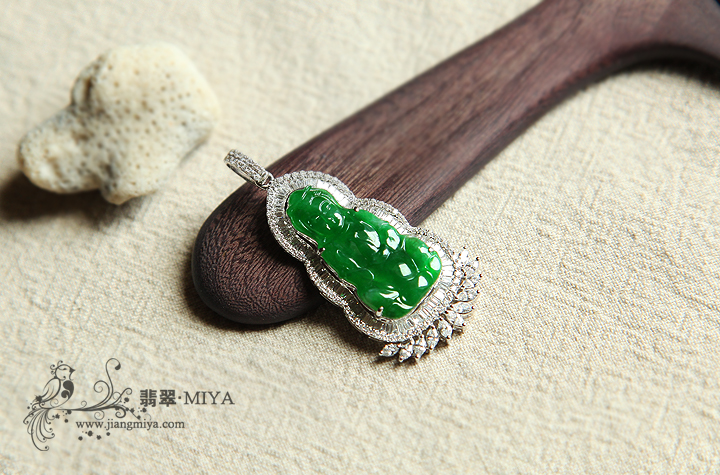 满绿色料,这样的大小比较适合女子佩戴;浓阳翠绿,冰种料子。
