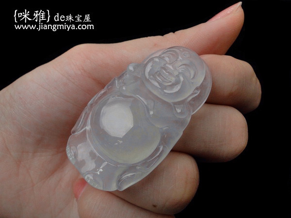 【咪雅翡翠】收藏级翡翠极品厚庄冰玻种大站佛挂坠