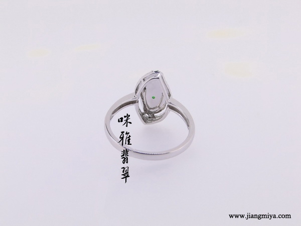 【咪雅翡翠】冰种满色蛋面18K白金镶嵌钻石翡翠戒指