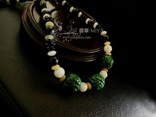 纯手工编织翡翠干青毛衣项链 发表于 2009年11月29日 | 咪雅 今天这2件也是搭配毛衣佩戴的,一件是四方雕花的干青,一件是圆珠雕花的干青。圆珠的颜色比四方的颜色更加深一些,都是纯手工编织而成。 材料是天然翡翠干青和天然翡翠珠子,与黑玛瑙搭配而成。 纯手工编织翡翠干青四方雕花毛衣链 尺寸:长:260mm 价格:1290元(已请走) 纯手工编织翡翠干青圆珠雕花毛衣链 尺寸:长:250mm 价格:1290元(已请走)
