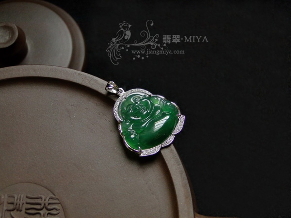 【宝贝名称】老坑冰种浓阳绿翡翠镶嵌弥勒佛2号(中)(诺儿 交易成功)