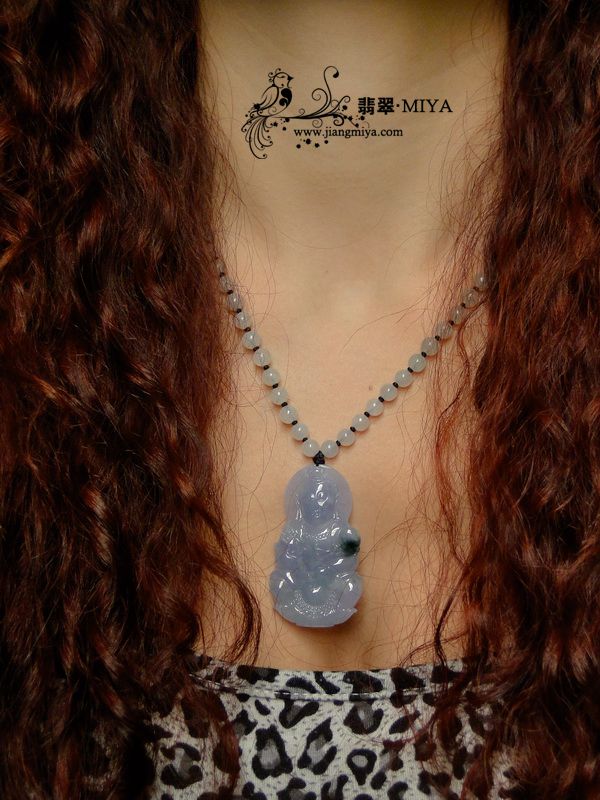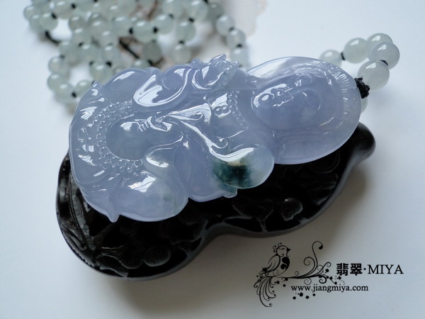 紫罗兰的料子通常是底子比较粗,很有颗粒感,但今天的紫罗兰观音,底子比较细腻,种为冰种,比较通透!