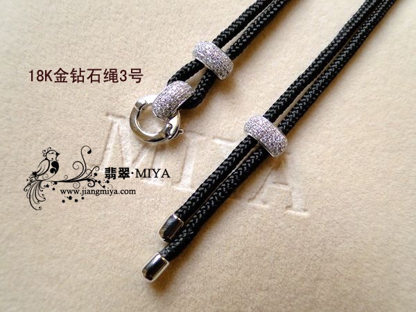 配18K钻石绳,翠翠不镶嵌扣子也是可以配的,那就是用下面这种黑色的手工拉环,