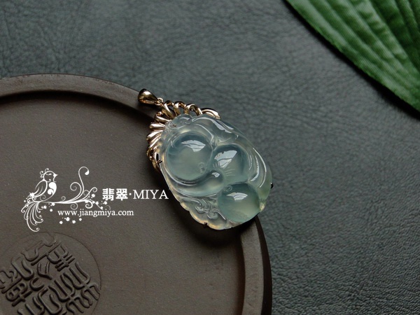 【宝贝名称】18K玫瑰金镶嵌冰玻种翡翠如意挂坠