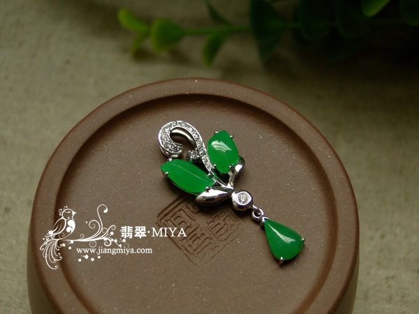 宝贝4:极品艳丽辣色花青翡翠镶嵌18K白金钻石吊坠2号