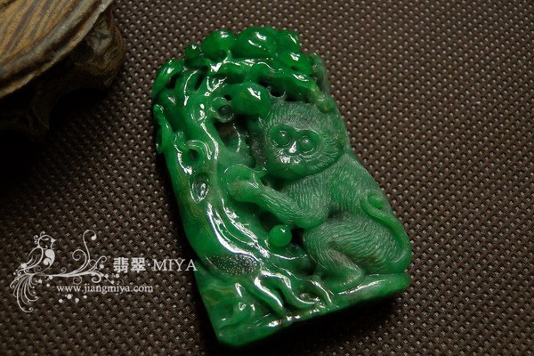 名称:超级厚庄老坑辣色翡翠灵猴挂件<守望>