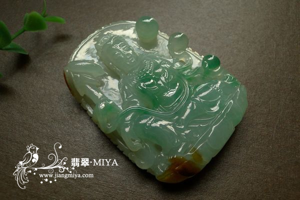宝贝4:老坑冰糯种黄色翡翠文殊菩萨大挂件