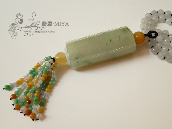 可以搭配毛衣佩戴的宝贝来喽~~这两件宝贝非常特别,有独特的味道,搭配天然翡翠圆珠项链,整体玉感十足,比较返朴归真的感觉,适合佩戴衣服外边,长长的链子坠下来。很好看得~~