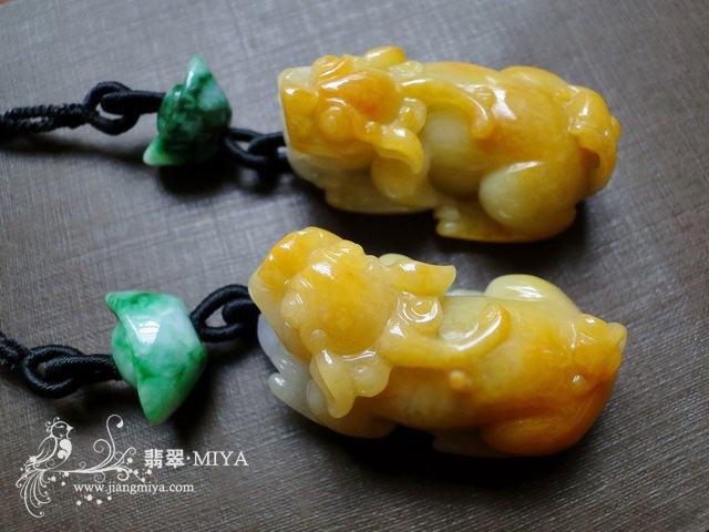 属于细糯种,天然俏色黄翡,两只为同个料子,本身是配对的,所以希望能两只一起走,拆开也比较可惜.