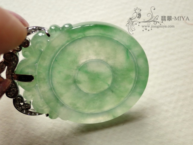 冰种淡绿底仿古雕刻怀古平安扣 发表于 2011年04月6日 | 咪雅 冰种,绿水,飘淡绿花,仿古雕刻的平安扣. 比较水润,通透.很完美.无裂,无纹. 缺点是,扣子的厚度偏薄.优点则是有种有色. 镶嵌18K白金钻石大扣子. 配戴效果很不错哦. 冰种淡绿底仿古雕刻怀古平安扣 (顾姐姐 预定) 编号:888165 翡翠尺寸:40*33*4mm带扣镶嵌长度:55mm 价格:22800元 VIP可享受1000元优惠,即为21800元.