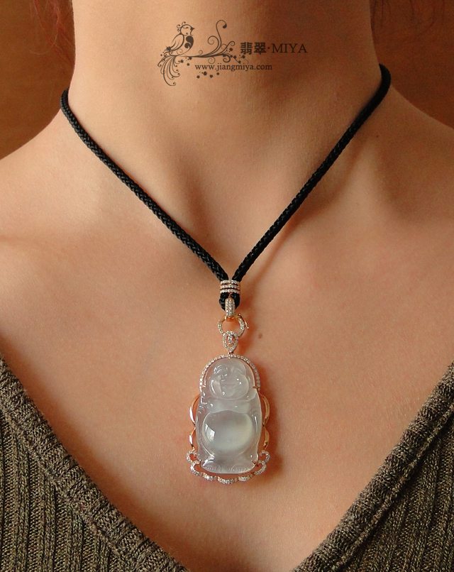 高冰种起荧光饱满大站佛 发表于 2011年04月7日 | 咪雅 高冰种,通透,光感比较强.略有棉. 起荧光,形状饱满,面容好. 非常完美,无裂,无纹,无瑕疵. 整体很水润的,并且佛佛的肚子很饱满,鼓鼓的,很是可爱. 镶嵌18K玫瑰金钻石.底部是镶嵌的一朵大云彩,佛佛脚踏大云彩. 配戴效果很不错的哦.整体来说,这一件在佛佛里算很不错的品质. 这样品质的佛佛现在市场价格大约在2万6千元以上.甚至更高. 高冰种起荧光饱满大站佛 编号:888166 镶嵌尺寸:49*26*10mm翡翠:37*21*7.5mm 价格:18800元 VIP可享受800元优惠.