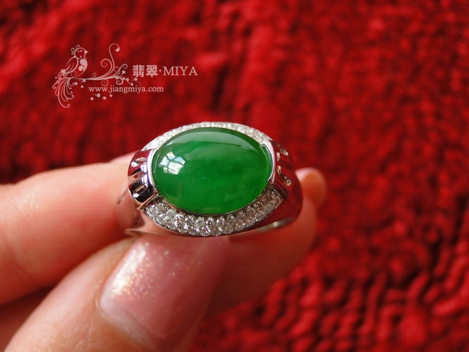 冰种翡翠满色浓阳绿戒指/男女皆可佩戴