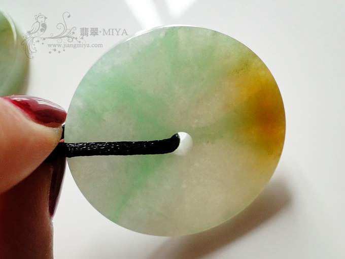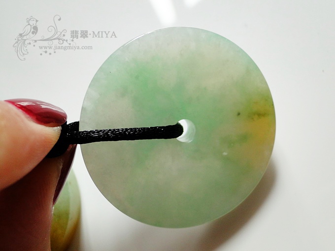 细糯种,浅绿色,颜色比较均匀,看起来比较舒服,唯一不足是有一条纹,正反面连通的,但是刮不到,仔细看可见。
