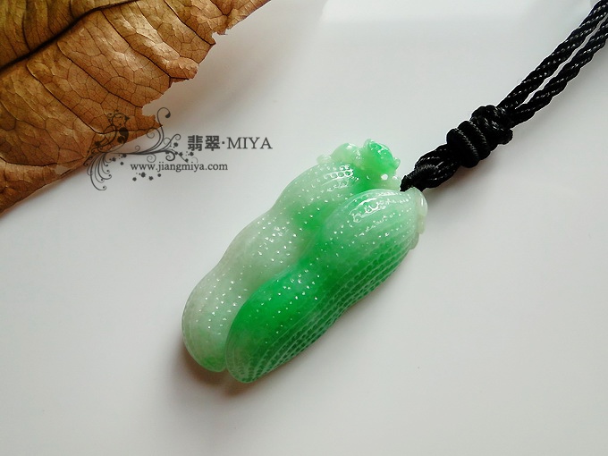 种很细腻,雕刻也非常细致,有一颗花生正面带翠色,另一颗上面还有一只小欢欢,看到它,我想起了