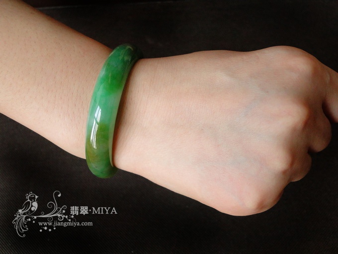 冰糯种,颜色略暗,绿色为深绿而并非阳绿。