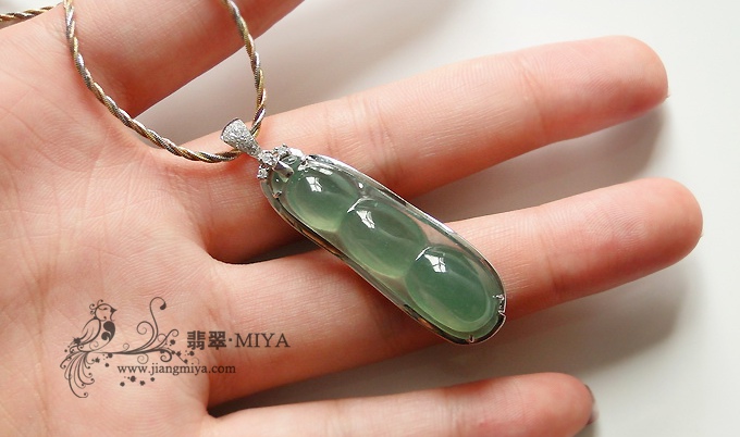 高冰种蓝绿水豆子挂坠